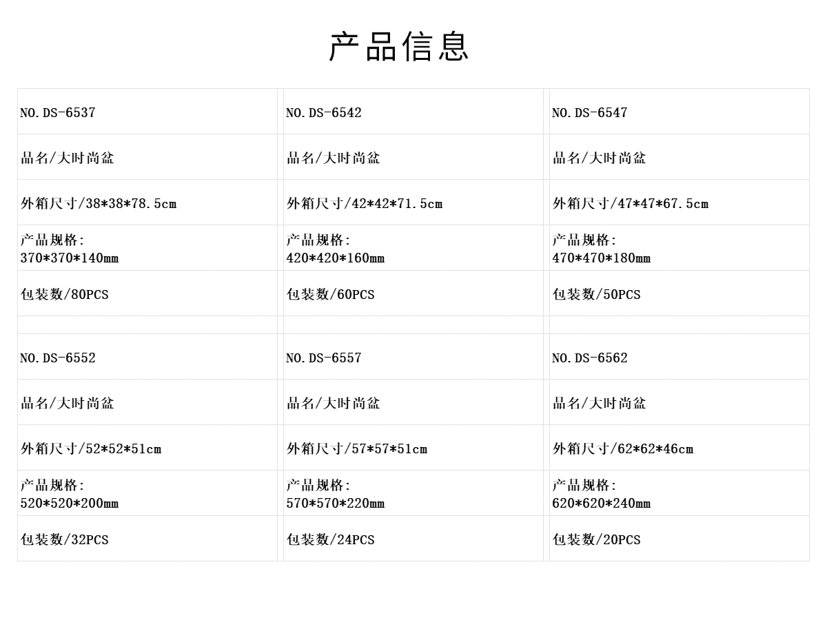 DS-6537:370*370*140mm/DS-6542:420*420*160mm