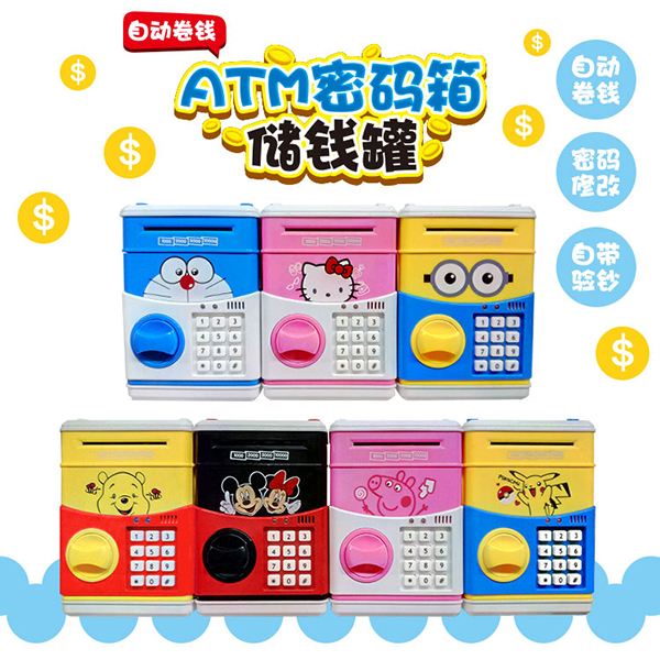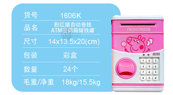 粉紅豬自動卷錢ATM密碼箱存錢罐