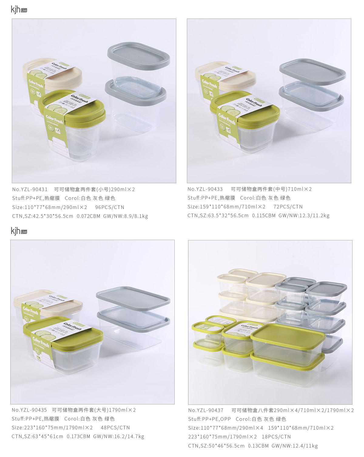 可可儲物盒兩件套(290ml小號/710ml中號/1790ml大號)/八件套