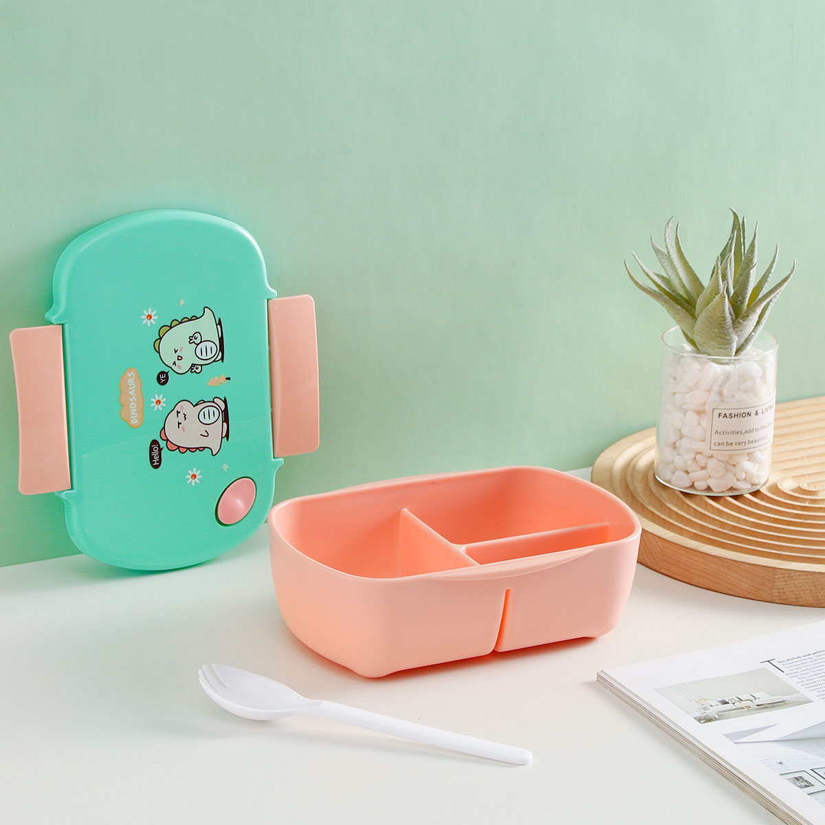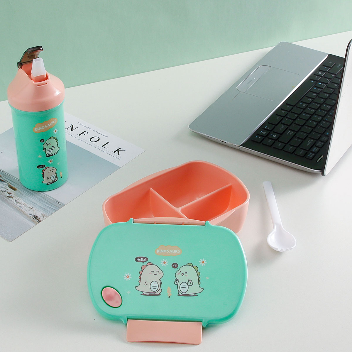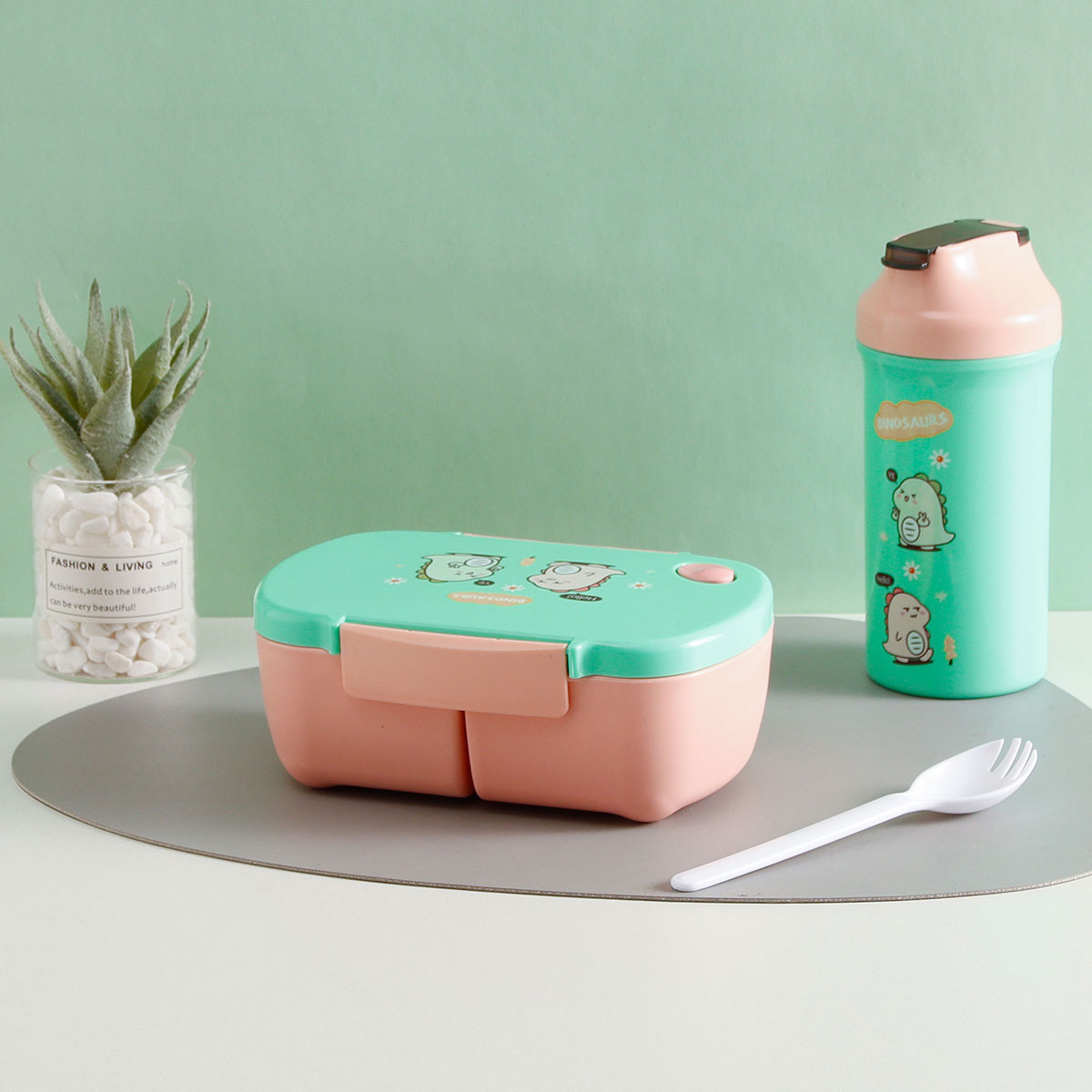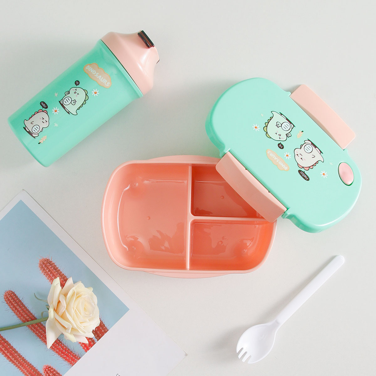 三格長方飯盒+500CC卡通水壺