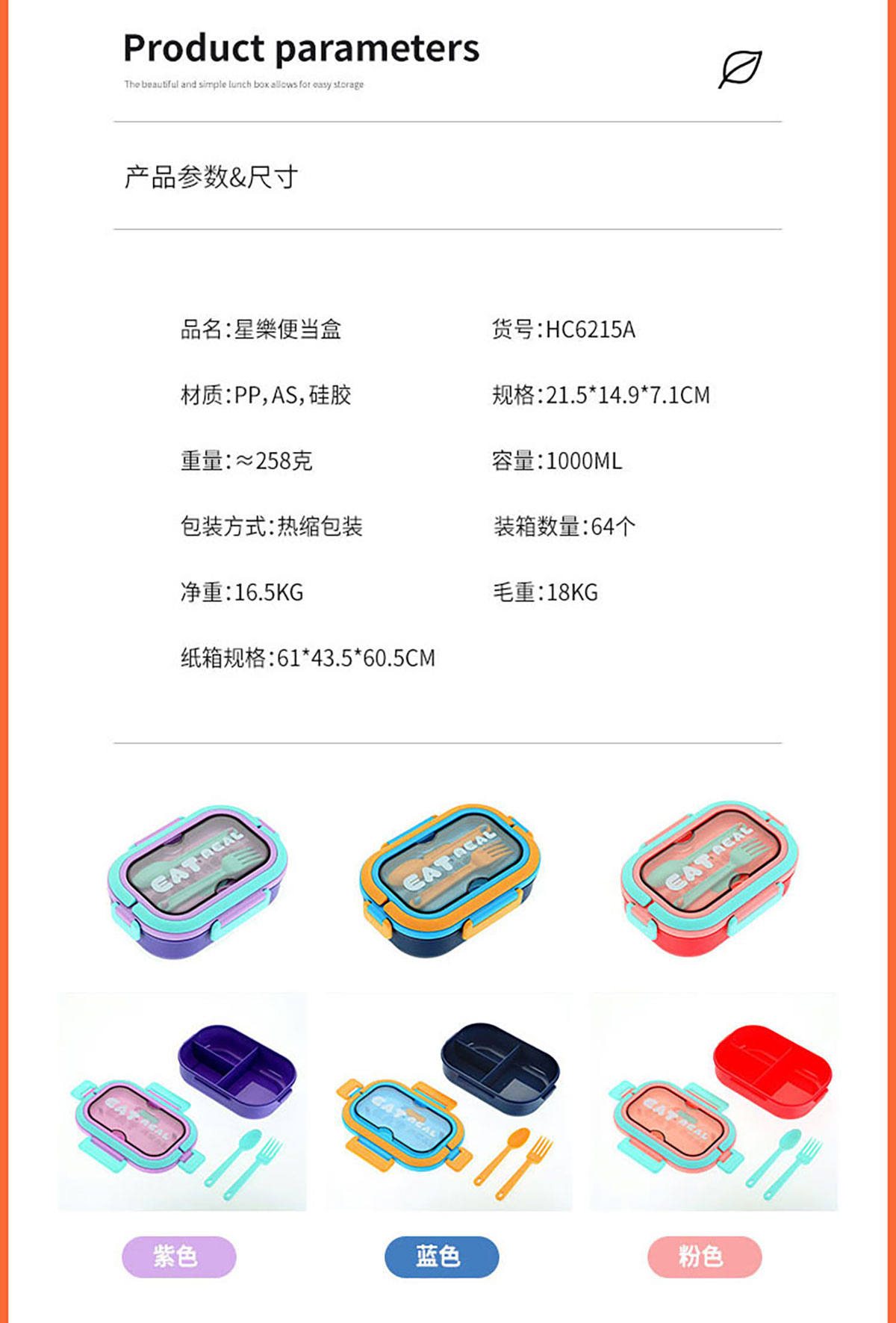 SWY-HC6215A(三格PP款):215*149*71mm/1000ml